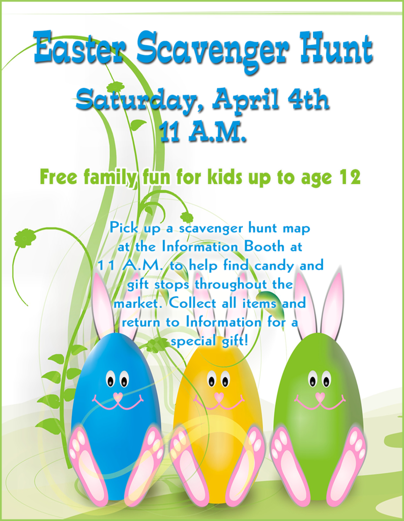 Pick up a scavenger hunt map at the Information Booth at 11 A.M.